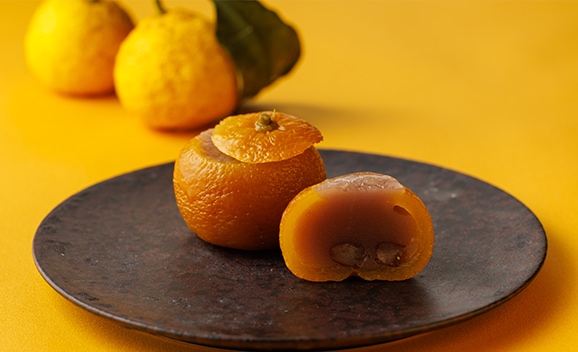 柚子の香りが豊かに広がる、彩雲堂の冬の季節菓子。国産の柚子をくり抜き、皮むき小豆餡を使用した羊羹と大粒小豆を流し入れて仕上げます。柚子は蜜漬けしておりますので、皮ごとお召し上がりいただけます。