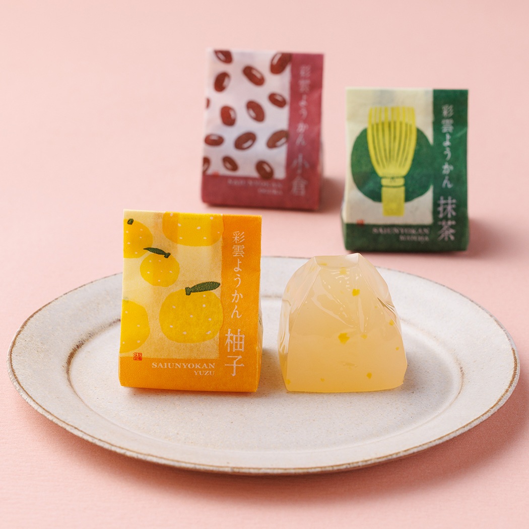 島根県三瓶山の天然水を用い、なめらかな口当たりに仕上げました。日持ちもよく、食べやすいサイズの羊羹です。小倉・抹茶・柚子の風味が口の中に広がります。