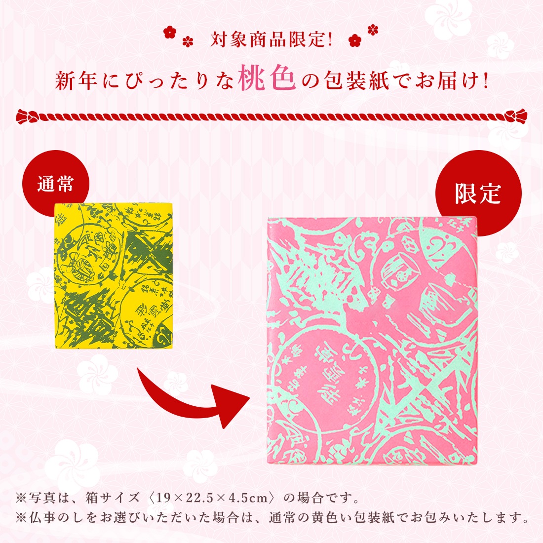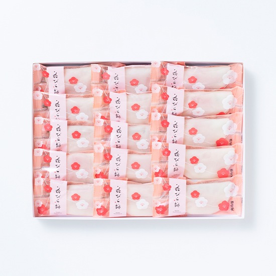 おめでたい梅の花を散らした上品で可愛らしいパッケージに仕上げました。