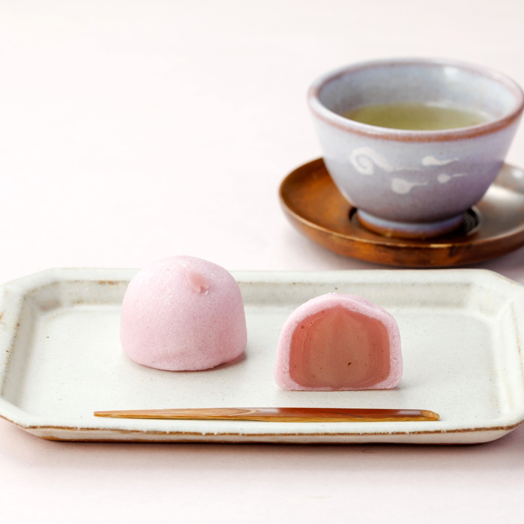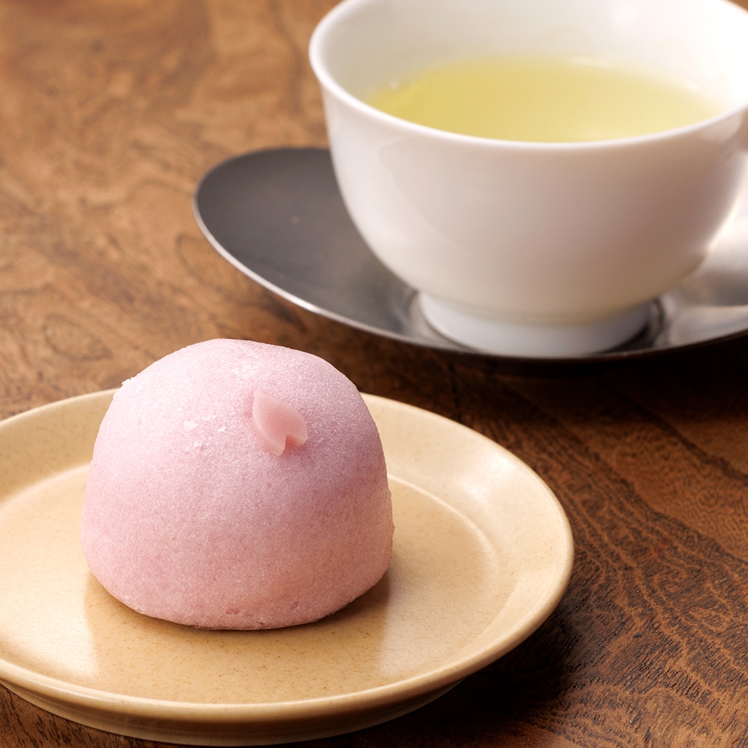 ほのかに桜が香る薯蕷饅頭は、しっとりとなめらかな口当たり。