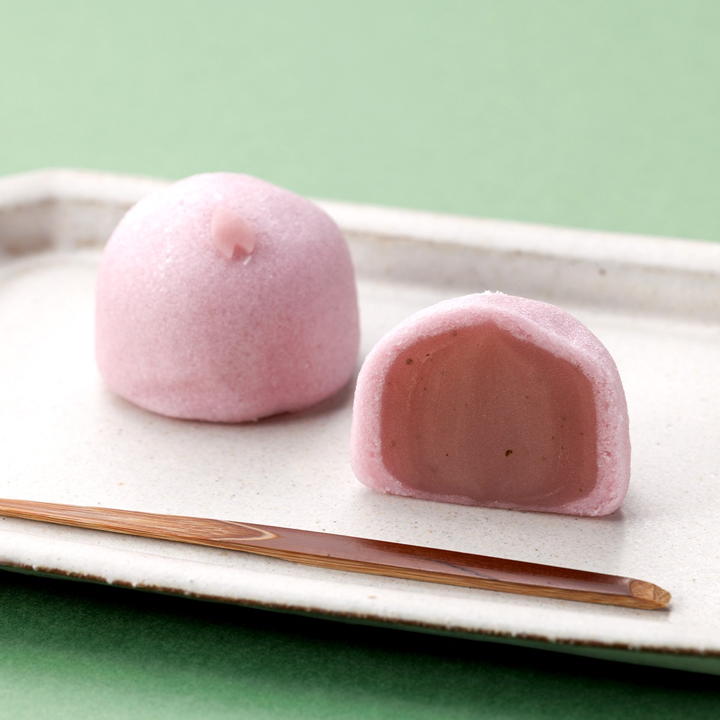 白餡に桜葉を加えた桜あんを、淡い桜色に染めたつくね芋の生地で包み蒸しあげました。表面に一片の桜の花びらを添えた、季節の薯蕷饅頭です。