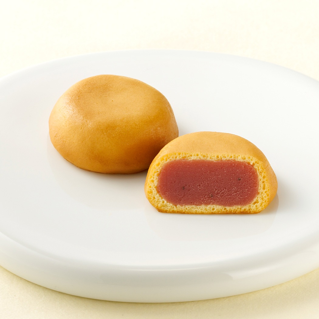 甘酸っぱい苺の風味が感じられる餡と、しっとりした口当たりが特徴の焼き饅頭をお楽しみください。