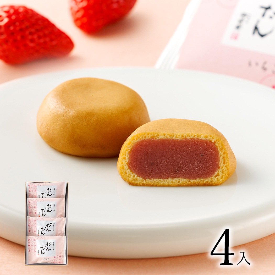 甘酸っぱい苺の風味が感じられる餡と、しっとりした口当たりが特徴の焼き饅頭をお楽しみください。